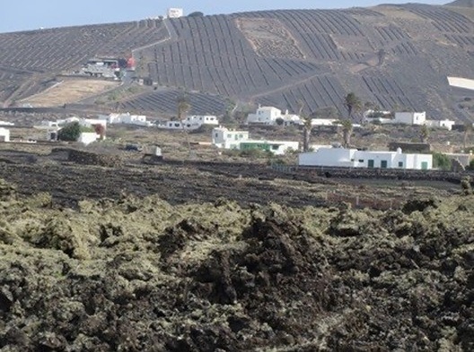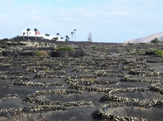 Esta espetacular paisagem tem colocado, ao longo de toda a história, imensas dificuldades ao estabelecimento humano. A estrutura agrária, que resultou da ação do homem frente às rigorosas condições colocadas pela natureza, tem produzido entornos excepcionais, que demonstram o trabalho contínuo de busca por melhores condições para o plantio: reacomodação do solo, busca e conservação da água, proteção aos fortes ventos. Exemplo deste labor histórico, La Geria (situada nas proximidades de Timanfaya), a mais conhecida das paisagens agrícolas insulares, demonstra toda a energia empregada pelos habitantes insulares na criação de condições de vida em tão difícil meio.