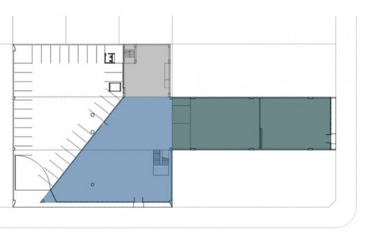 As instalações elétricas e hidrossanitárias e os dutos de ar condicionado são aparentes e sinalizados por cores. O arquiteto define as áreas de público com piso vinílico, na cor caramelo, e as áreas privativas nas cores azul e rosa.