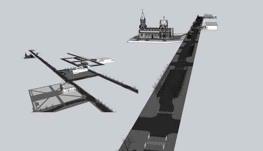 Partiu-se de uma trama ideal, 100% acessível e democrática na sua essência que, ao se sobrepor na cidade real, isola alguns elementos urbanos e, ao mesmo tempo, promove a reinserção paisagística dos edifícios públicos de valor histórico. Ao superar o caráter “insular” dos edifícios fragmentados ao longo dos anos, foi possível conceber uma rede orgânica e sinérgica, recuperando a relação entre conservação e inovação no âmbito do projeto e do programa.