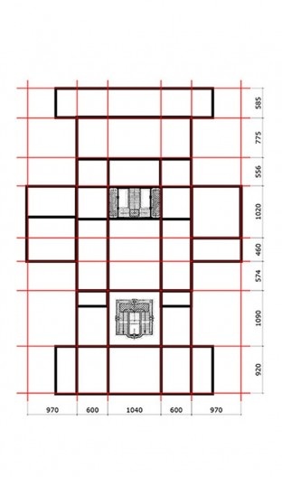 Eduardo Rossetti, em uma comparação similar entre os dos dois palácios, nota que apesar do deslocamento do eixo nos primeiros andares, a razão “no novo Palácio, esta proporção é re-estabelecida pelo sistema estrutural das colunas internas que perpassam a laje e se solidarizam com a super-estrutura da arcada [no último andar], definindo espaçamentos na razão de 3:6:3 arcos, ou seja, a mesma razão 1:2:1 do velho palácio neoclássico” (36). Rossetti se refere às seis janelas do primeiro andar do palacete que são distribuídas em três faixas, duas em cada faixa lateral e quatro na central. Verificamos esta razão através de um diagrama e vimos que as medidas não correspondem exatamente à razão 1:2:1, mas isso não invalida a análise. Rossetti observa ainda que, apesar dessa semelhança, a característica predominante na fachada do palácio de Brasília não é marcada por essa razão, mas sim pela sucessão de dezesseis arcos ordenados de acordo com a modulação estrutural de 6m x 6m.
