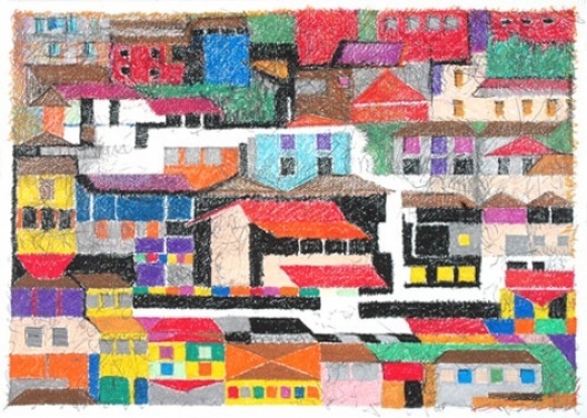 Isso fica explícito no tratamento das superfícies das paredes dos edifícios, que são densas porque mostras de mera arquitetonicidade. São esgarçadas porque trazem vestígios de suportes, de olhares que acariciam argamassas rugosas, de irregularidades das telhas.