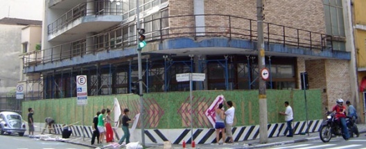 A instalação das escoras e tapume foi feita pela construtora Pires & Giovanetti, com o projeto de montagem das escoras elaborado pela empresa Metax. O projeto do tapume ficou a cargo do IAB/SP, que convidou a estudante de arquitetura Nadezhda Rocha e as arquitetas Julia Masagão e Isabel Abascal para desenvolverem uma proposta gráfica para a pintura do lado externo.