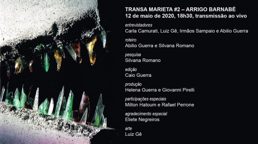 “Transa Marieta”, segundo episódio, dia 12 de maio de 2020, às 18h30. Entrevistadores: Carla Camurati, Luiz Gê, João Sampaio & Paulo Sampaio, e Abilio Guerra. Programa do Projeto Marieta (Helena Guerra, Caio Guerra, Giovanni Pirelli, Silvana Romano Santos e Abilio Guerra).