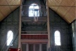 La estructura del campanario se asemeje a una armazón de mecano. Apernadas a cuatro pilares de esquina que suben hasta la base del chapitel, se hayan las plataformas del coro con su baranda de tracería, la plataforma que le sirve de cielo para el órgano y la plataforma donde cuelgan las campanas. Un agudo chapitel remata el campanario.