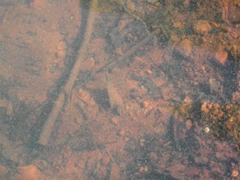 Numa viagem a Fama, feita depois de um croqui publicado no portal Vitruvius (2), eu esperava encontrar as duas cidades – a submersa e a real – lado a lado, numa paisagem quase romântica que traduzisse essa questão de maneira diagramática. De um lado da linha a cidade real. Do outro, bem no meio do lago, um casebre afundado com a cumeeira ainda visível, paredes em ruínas com o nível d’água a meia altura, a ponta da chaminé de uma fabriqueta qualquer. Mas o que encontrei foi uma paisagem mais expressiva: quarenta anos depois da construção da represa, claro que a cidade submersa está totalmente esquecida sob a lâmina d’água e nada emerge mais. A tal linha d’água só passou a ter sentido depois que descobri o lado secreto (e realmente interessante) daquele lugar: mergulhando com minha câmera fotográfica à prova d’água, vi galpões e casas e padarias e vendas, todos maravilhosamente esquecidos sob cinco ou dez metros de coluna d’água.