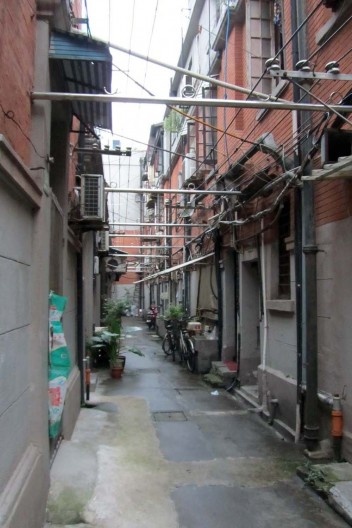 O primeiro caso é de uma vila bastante deteriorada no Jing’an District, próxima à estação Changping Rd., Linha 7, entre as ruas Chang De, Chang Ping e Xi Kang. Essa vila provavelmente foi construída no início da década de 1930, data registrada em uma de suas entradas. Cercada por edifícios residenciais altos, alguns ainda em construção, a vila lembra os cortiços do centro de São Paulo. As casas possuem no máximo três pavimentos e, tendo em vista sua baixa densidade e mal estado de conservação, a impressão é que ela logo será demolida para dar espaço a novos espigões. Apesar da pobreza encontrada, a sensação ao atravessar essa vila foi muito mais a de estar invadindo o espaço que as pessoas usam como extensão de suas casas, do que a de insegurança. Praticamente não existe crime na China, em consequência de uma severa política de punição, que inclui a pena de morte. A prostiuição e o tráfico de drogas não são tolerados, e o controle é feito por cidadãos comuns de cada bairro ou comunidade, que delatam à polícia qualquer atividade suspeita.