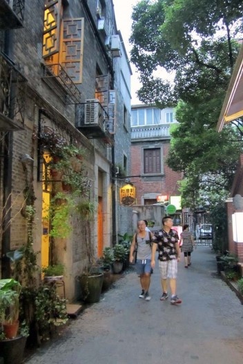 A vila mais bonita para passear, porém a mais gentrificada, e que tem hoje um uso exclusivamente comercial, é Xintiandi, também na concessão francesa (estação Xintiandi, Linha 10). O local possui uma agitada vida noturna, com inúmeros bares e restaurantes sofisticados.