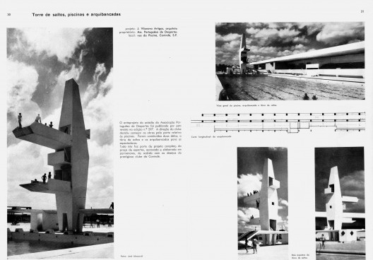 Sobre o projeto, ver: ACROPOLE. Torre de saltos, piscina e arquibancadas. Acropole, São Paulo, ano 25, n. 297, jul. 1963, p. 252-255. Disponível em: <http://www.acropole.fau.usp.br/edicao/297>; ACROPOLE. Torre de saltos, piscina e arquibancadas. Acropole, São Paulo, ano 29, n. 348, mar. 1968, p. 30-33. Disponível em: <http://www.acropole.fau.usp.br/edicao/348>; FERRAZ, Marcelo Carvalho (org.). Estádio da Portuguesa de Desportos. Vilanova Artigas. Lisboa/São Paulo: Blau/Instituto Lina Bo e Pietro Maria Bardi/Fundação Vilanova Artigas, 1997, p. 120-121.