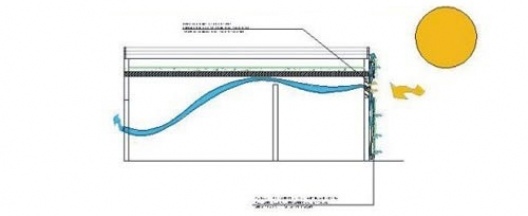 Foram criadas portas basculantes que abrem e fecham conforme horário de funcionamento, quando fechadas não privam a integração do edifício com o meio externo e quando abertas, servem de teto para o edifício, criando uma paginação no piso, devido ao desenho da tela galvanizada quando recebe a luz solar.
