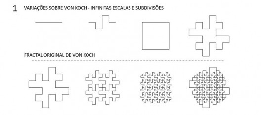 Partimos de um conhecimento científico do homem sobre a natureza: o infinito presente na natureza é reconhecido e, posteriormente, parametrizado pelo homem através de conceitos matemáticos e geométricos. Esse conhecimento científico origina um segundo tipo de infinito, sintetizado no conceito de fractal: razão infinitesimal criada pelo homem a partir de sua interpretação das características do meio que o envolve, novas noções de auto-semelhança e complexidade infinita, capazes de entender a natureza em suas ilimitadas escalas. Nosso desenho é uma terceira visão sobre esse conceito. Através da materialidade e da textura do edifício cria-se uma interpretação humana sobre um evento natural.