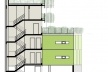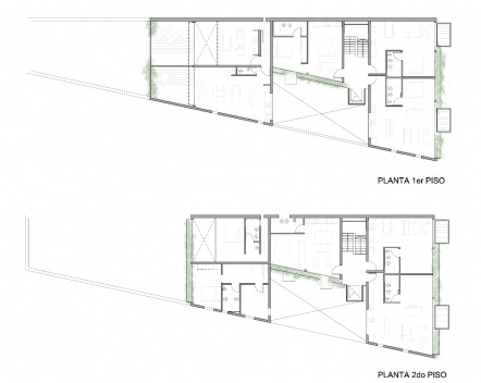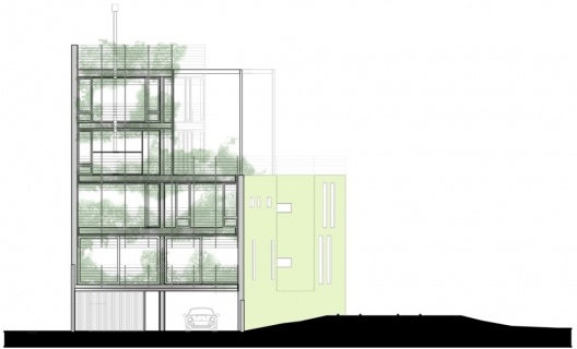 Son 10 departamentos, casi todos diferentes. Ocho de ellos tienen acceso por un palier semiexterior de mínima superficie. A los dos restantes se accede por medio de una escalera particular. Por ser una obra pequeña, se privilegió la diversidad y la particularización de cada unidad por sobre el apilamiento y la repetición.