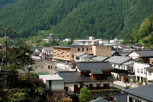 Yusuhara Machino-eki is a complex of a market selling local products and a small hotel with 15 rooms. Combining the two different functions via atrium, a new core facility was born for the town of 3,900 inhabitants in the mountains.