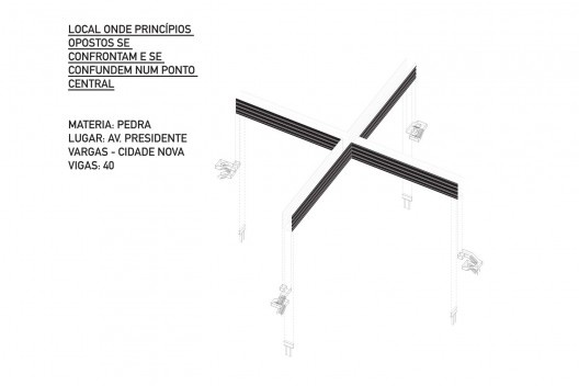 O projeto assume o módulo da viga (40m x 1,65m) como elemento primário. Sua multiplicação - encaixe entre eles a partir do ângulo de noventa graus - possibilita diversas combinações, desdobrando-se em múltiplas formas. Os rudimentos são o sistema resultante dessa equação. Diante das inúmeras hipóteses, quatro estudos de caso foram elaborados, em forma de linha, cruz, quadrado e labirinto, localizados, respectivamente, na Avenida Brasil (Ramos/Maré), na Avenida Presidente Vargas (Cidade Nova), na Linha Amarela (Del Castilho) e na Avenida Ayrton Senna (Jacarepaguá). Os contextos foram escolhidos de acordo com o significado atribuído para cada forma.