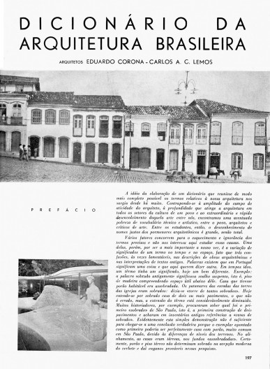 O prefácio é delicioso de ler e cita as retificações feitas pelos autores, com várias colaborações. A mais famosa é sobre a origem do nome cobogó, objeto tão usado em nossa cultura arquitetônica modernista (e mesmo a mais recente). E consta desta edição, a carta de Geraldo Gomes da Silva a Carlos Lemos com a correta definição e origem.